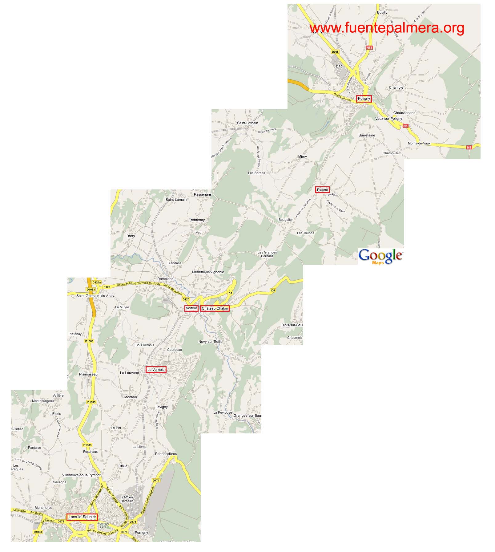 Nota: pasado Poligny es necesario primeramente girar a la izquierda hacia Plasne, Château-Chalon,