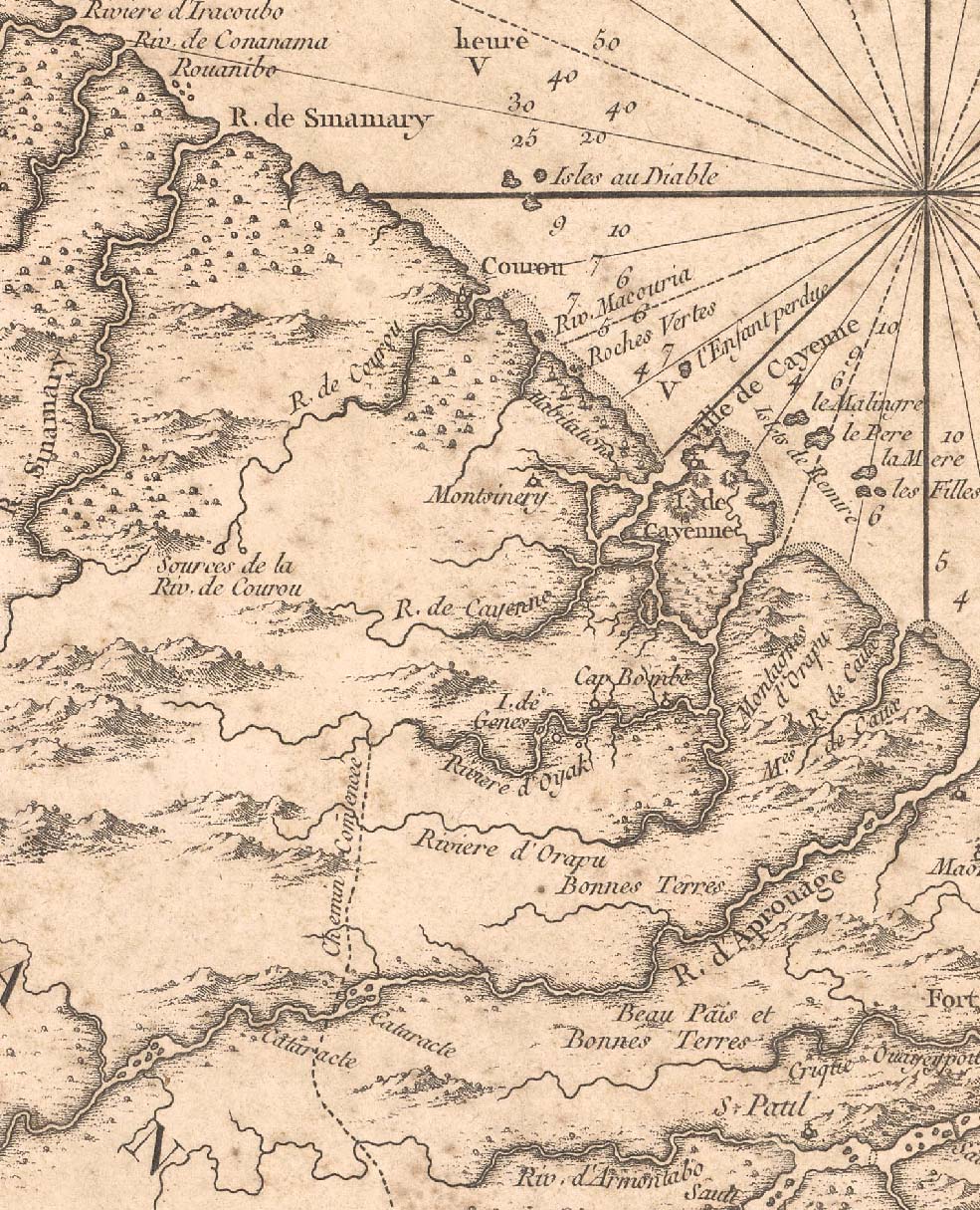 Cayena en un fragmento del mismo mapa (de Jacques Nicholas Bellin -