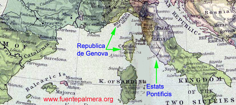 Còrsega (establerta des de 1755 a 1769). Es evident que la situació