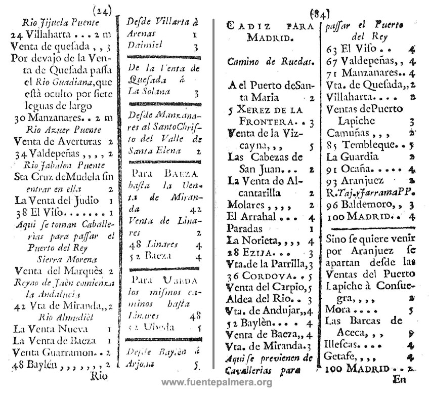 Guia de Caminos (Joseph Mathias - 1767) on explica que al arribar a