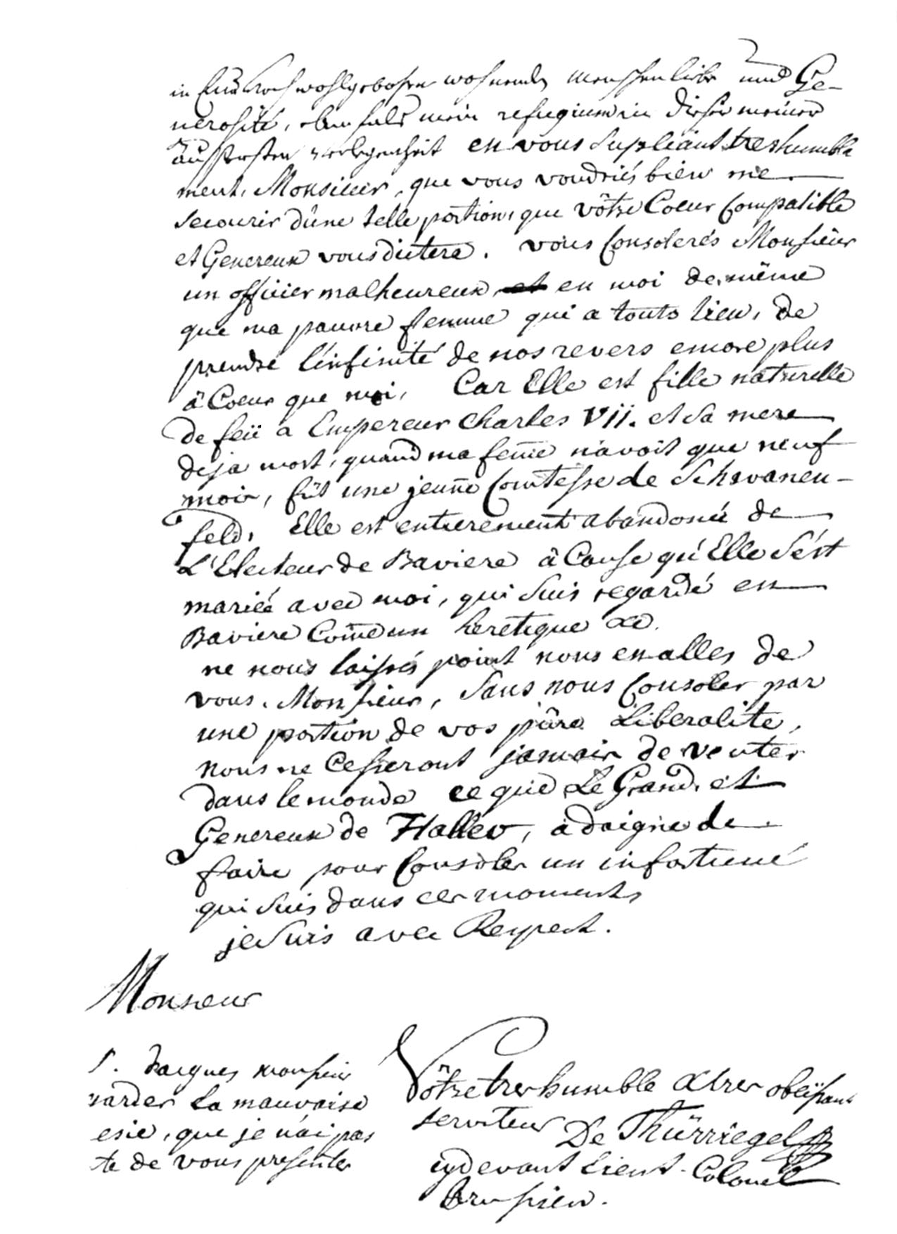 carta, de l’Emperador Karl VII amb una tal comtessa de Schwanenfeld que va morir quan Maria Anna tenia només nou mesos. |